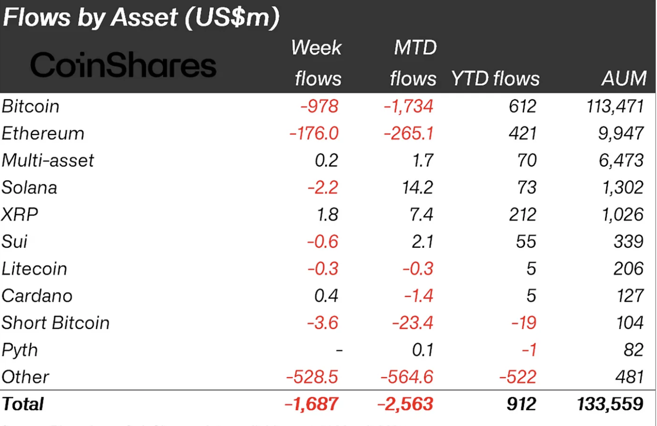 На прошлой неделе — с 10 по 14 марта — инвестиционные продукты на базе криптовалют потеряли $1,7 млрд