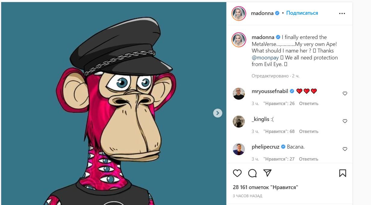 Американская поп-певица купила NFT из коллекции Bored Ape Yacht Club. Информацией об этом исполнительница поделилась с читателями своего микроблога в Instagram (признан в РФ экстремистской социальной сетью).